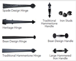 Decorative hardware is the second, even maybe the first, easiest way to dress up your door. With items like hinges, handles and window overlays you can quickly transform the look and style of your door. Even more accessories exist like door knockers, iron studs, and decorative angle brackets.